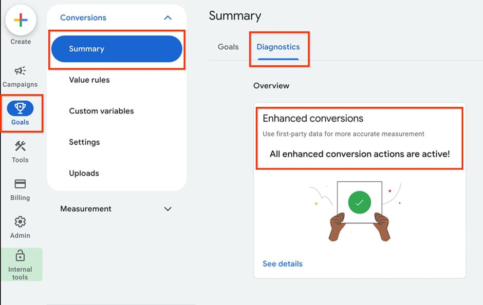 Make sure that Enhanced Conversions are set up correctly in your Google Ads account.