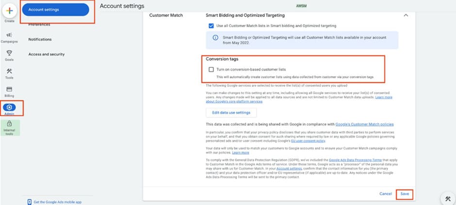 If you have Enhanced Conversions set up correctly, you can activate this option with a few clicks.