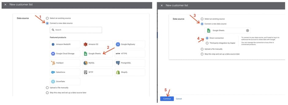 Step 3. Select Google Sheets as the source of information. Specify that it should be a “Direct connection.” This will allow you to update the information in the future.