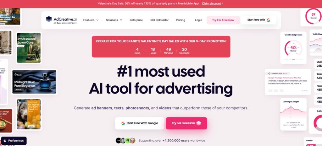 Offers keyword selection with AI support, competitive ads analysis, and campaign optimization. Besides, it helps with automated ad testing and tracking of their performance.