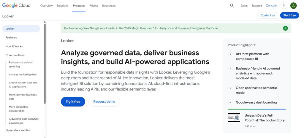 The business intelligence tool is equipped with analytics based on AI, forecasting, and marketing KPI monitoring across various data sources.