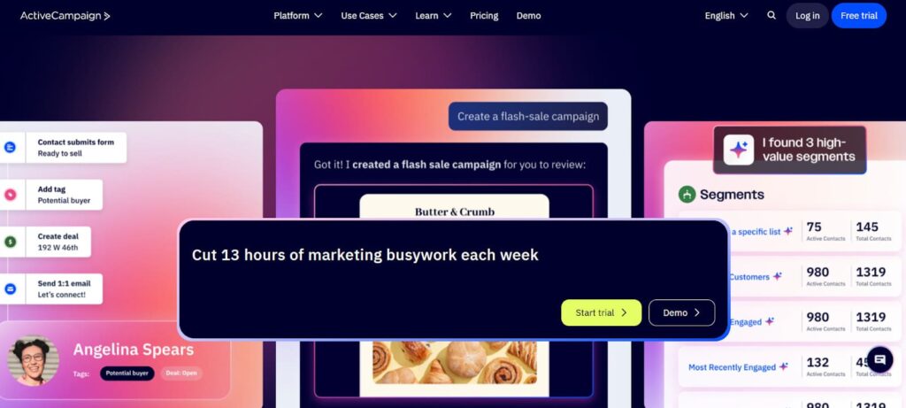 The usage of AI technology helps in predicting lead scoring, mapping the journeys, and also figuring out the best time to send emails for sales-driven automation.