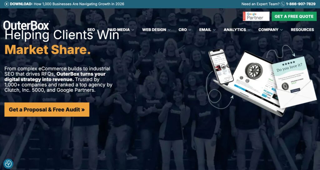 The company is also a partner of Google and Meta, specializing in SEO, paid advertising, and social media. Additionally, it has over 105 positive reviews on Clutch and mentions in Forbes.