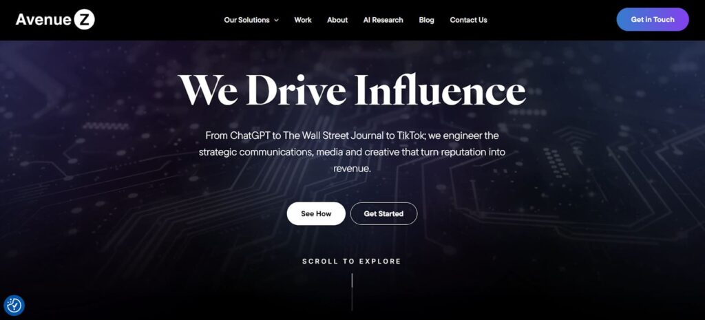 Started in 2007 and headquartered in Miami, Florida, with offices in Orlando and New York, Avenue Z is a 50-249 person marketing agency emphasizing AI optimization and multi-channel influence.
