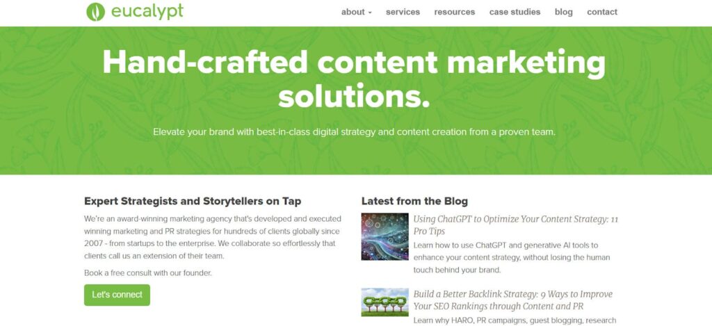 The 10-49-person business Eucalypt Media was established in 2007 and has its headquarters in Ponte Vedra Beach, Florida. It specializes in social media and content marketing.
