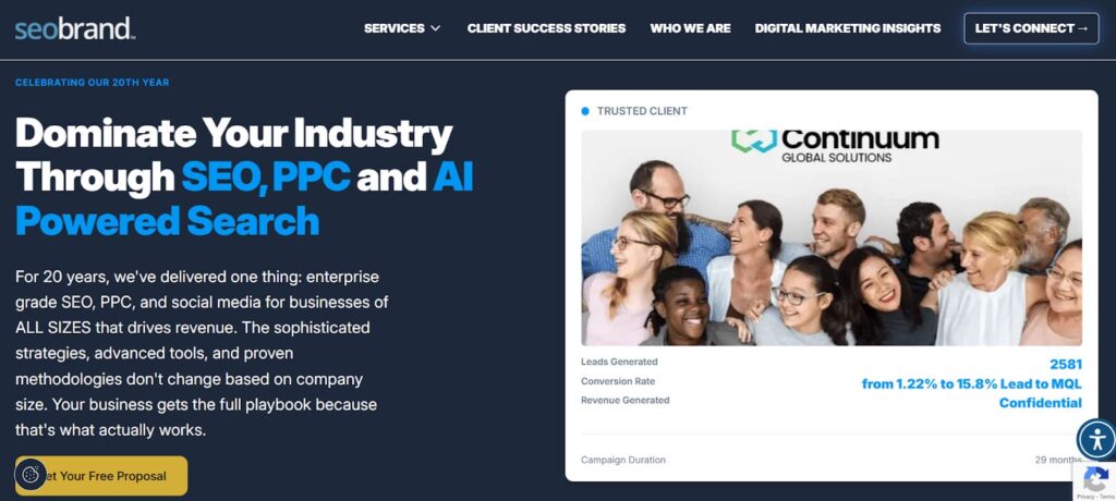 Standing out for its senior-led execution and emphasis on SEO, AI-driven search visibility, and conversion-optimized web construction, the business has over 20 years of expertise with B2B, healthcare, manufacturing, and educational enterprises.