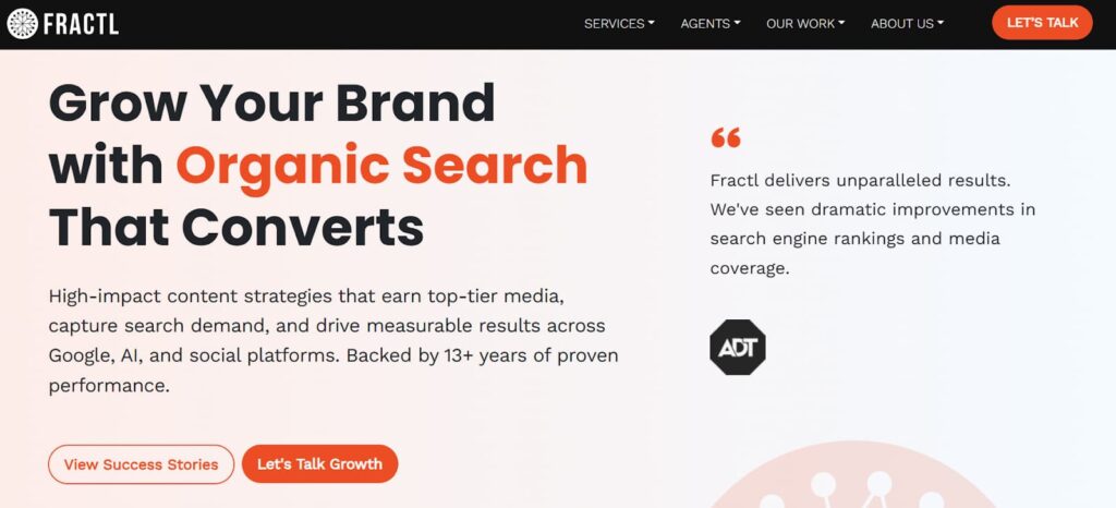 Agencies in this category build a growth strategy around SEO, on-page optimization, entity-based content architecture, and authoritative link acquisition. The goal is to increase organic visibility in search engine result pages (SERPs).