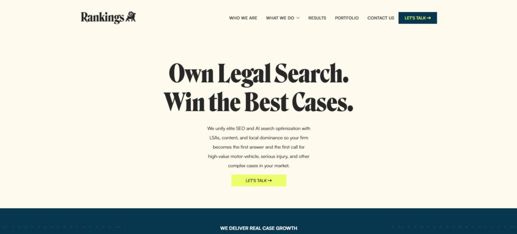 Rankings.io develops systems for businesses to achieve vertical search dominance through their expertise in high-intent industries, which uses local optimization and paid campaigns.