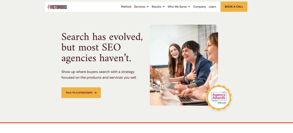 Victorious is positioned as an SEO Agency of the Year winner five times by implementing a systematic SEO and AEO model, which integrates technical SEO with content strategy.