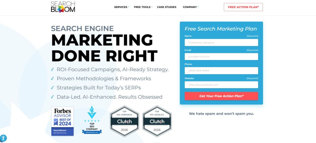 Searchbloom develops customized strategies that match specific business models, and their customer engagement processes require more time than standard industry practices.