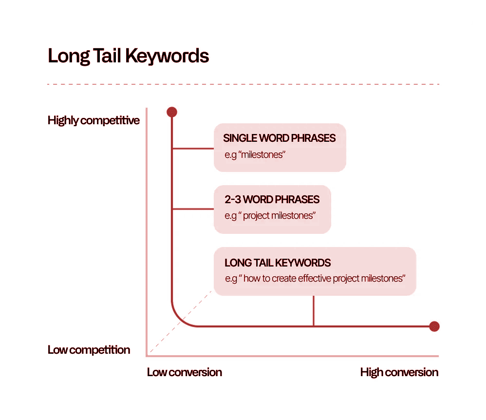 Instead of generic volume data, an SaaS SEO agency would focus on keywords that match user Jobs-to-Be-Done, feature-specific workflows, and the intent stage. Combine competition analysis, SERP intent evaluation, and semantic clustering to find the phrases that drive qualified traffic and conversions.