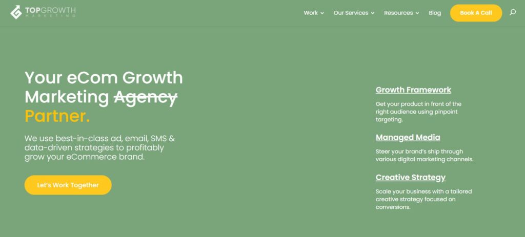 - Core services: Ecommerce Marketing, Email Marketing, PPC, and Digital Strategy.