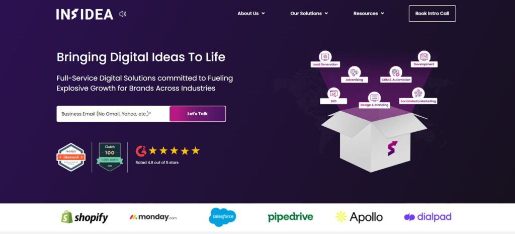 INSIDEA, a Clutch 100 leader and HubSpot Diamond Partner, combines web development, email, PPC, CRM consultancy, and social media management into scalable campaigns.